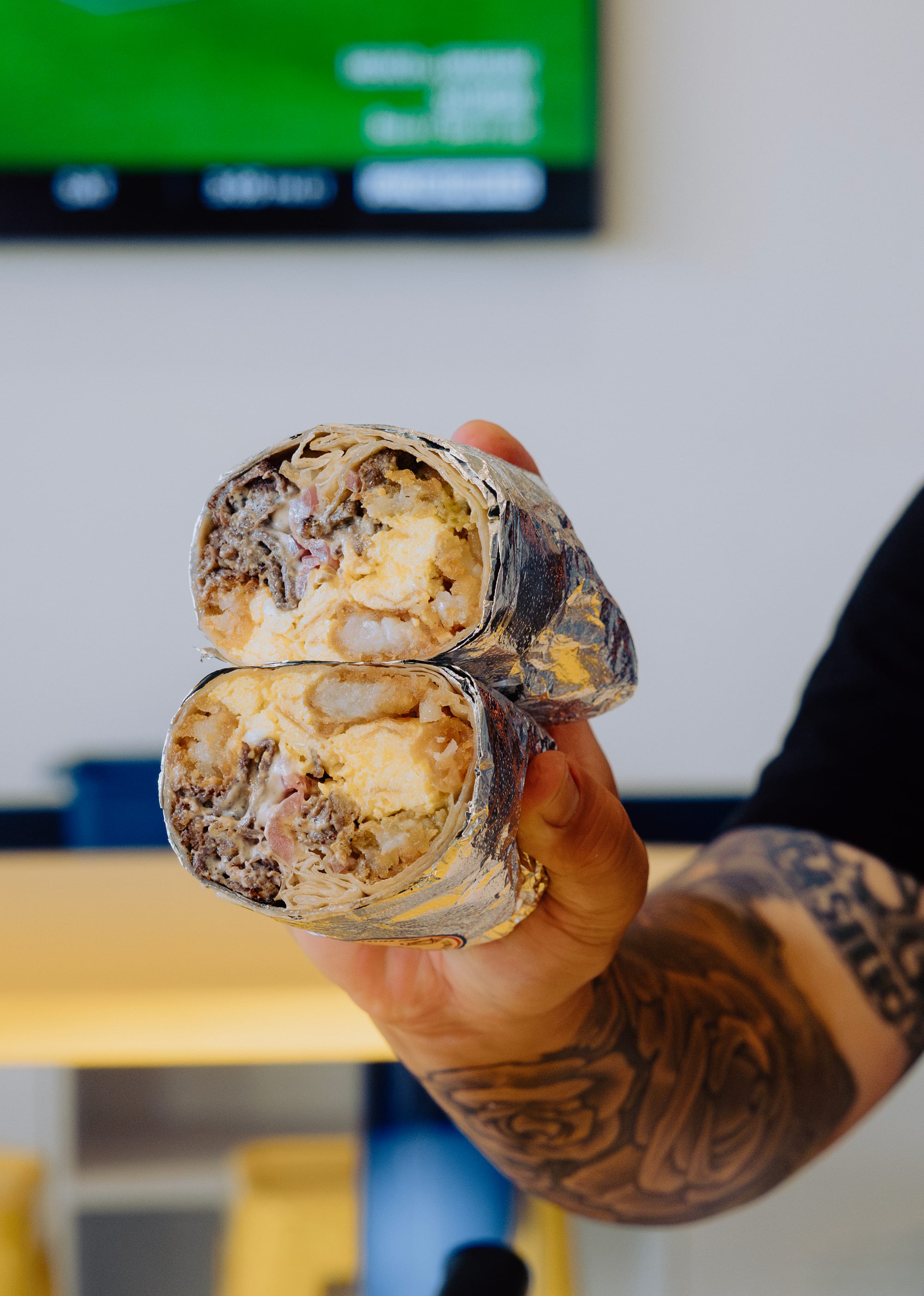 For this special iteration of Morning Blend, a breakfast burrito will be served — the first-ever breakfast offering from the taqueria. The signature burrito will include Filipino-style ribeye bistek, tater tots, pickled red onions, scrambled eggs with cheese, Mexican crema, and tomatillo salsa. In addition, Excelsior Coffee will supply a turon-inspired cold brew featuring a banana cream foam that is meant to play on the flavor profile of the Filipino dessert lumpia filled with plantains and jackfruit.
