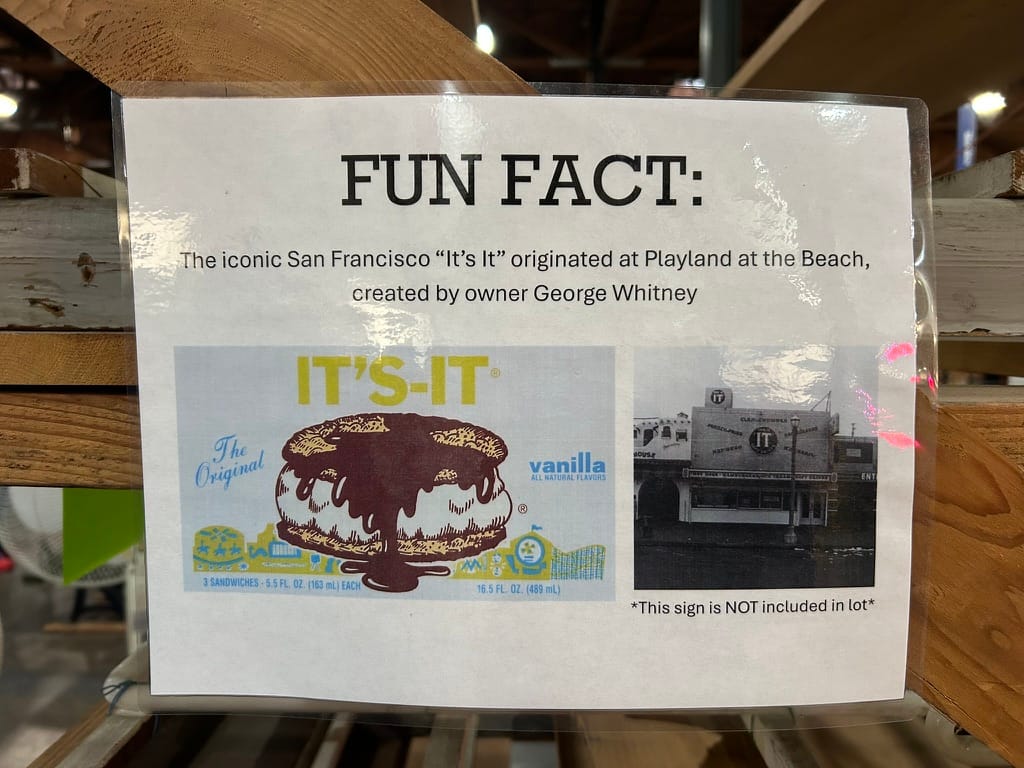The search for the weird and zany was fun until I found this incredible piece of history, and I wished with all my heart that I had a few thousand dollars to buy it: original IT’S IT neon, from a sign that used to sit at Playland-at-the-beach in San Francisco from 1928 to the 1970s.
